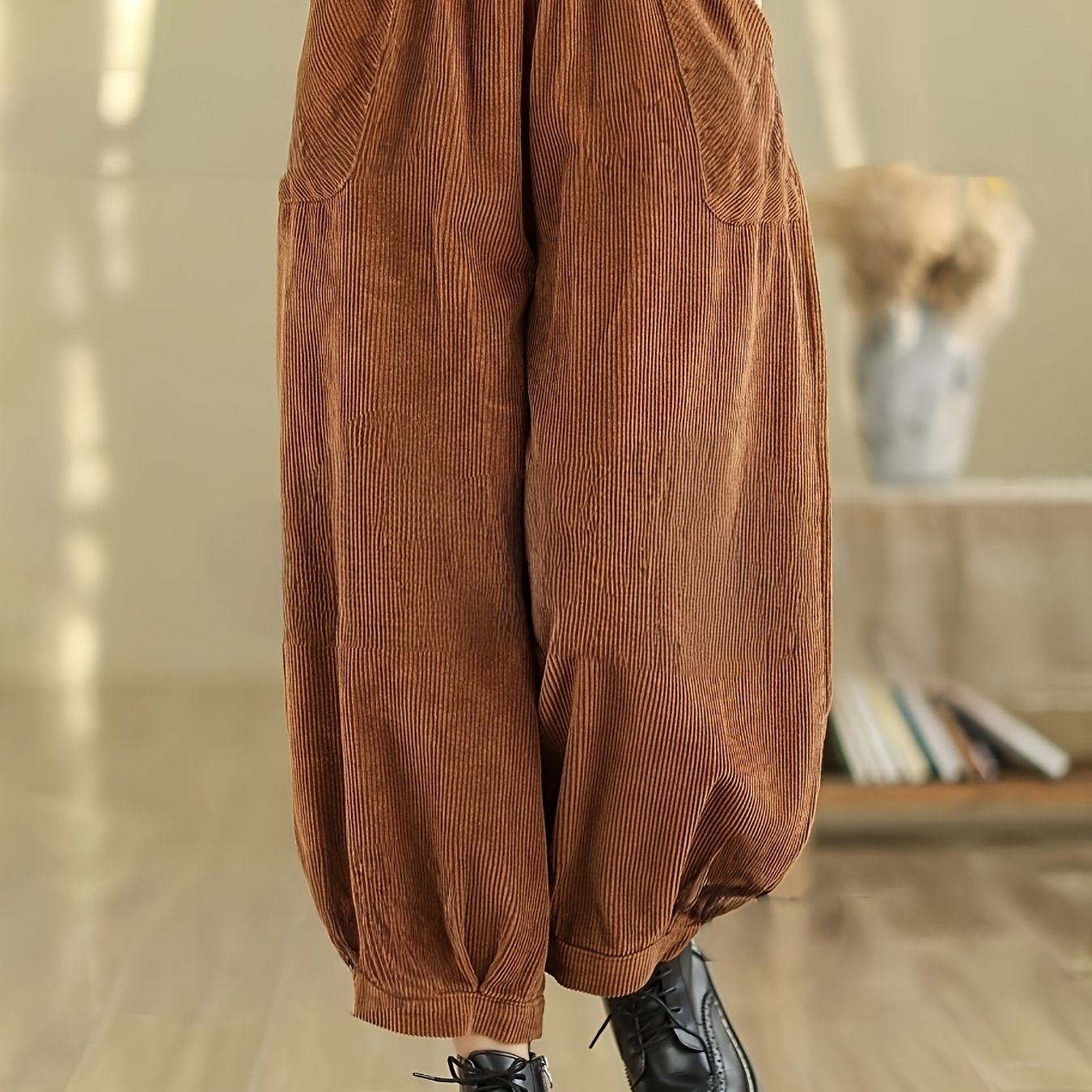 TEMU 여성 빈티지 스타일 코듀로이 와이드 레그 팬츠 - 캐주얼 루즈핏, 솔리드 브라운, 하이웨이스트, 버튼 디테일, 가을/겨울에 완벽, 편안하고 스타일리시, 하이웨이스트 팬츠