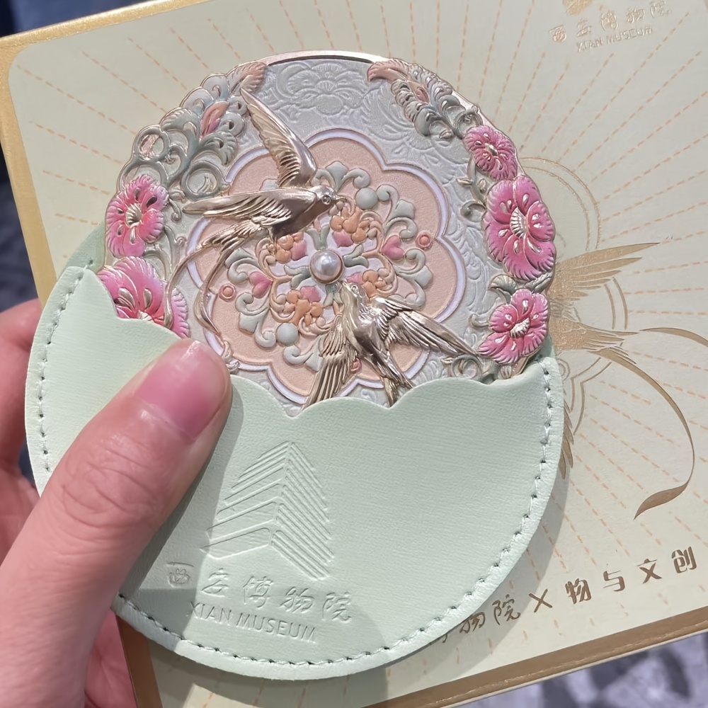 TEMU 중국풍 페인팅 메이크업 거울 2개 세트 | 꽃과 새 패턴의 작은 거울, 에나멜 공예, 철제 프레임, 광택 마감, 휴대용, 배터리 없음