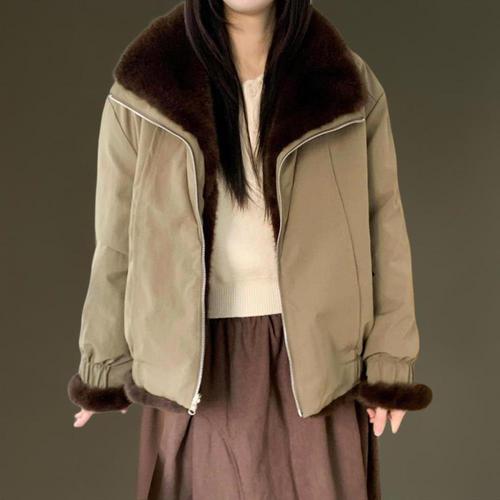 [헤이올리]브라운재입고/고퀄 페이크퍼 하이넥 히든 클로징 자켓 JH442-1