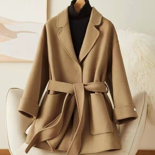 TEMU XWI 여성용 봄/여름 신상 코트 - 알파카 양면 코트, 핸드메이드 트림, 가을/겨울 캐주얼 커뮤터 스타일