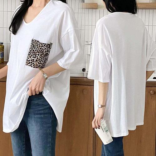 여성빅사이즈옷 오버핏 NO 호피U넥포켓7부티셔츠(G451H403) 오버핏