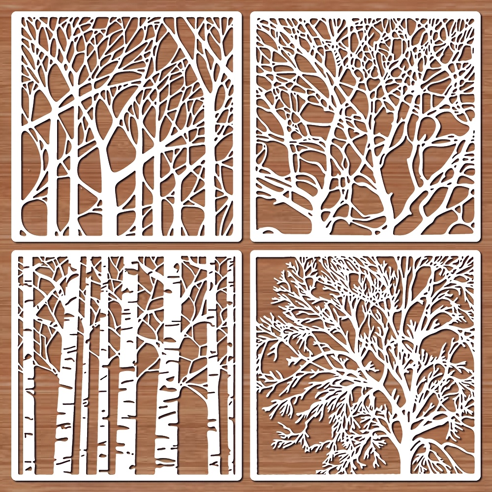 TEMU 4pcs 벚나무 줄기 스테인츠, 크림 화이트, 7.87", 재사용 가능, 플라스틱, 예술적, 나무, 직물, 벽, 가구 및 DIY 공예에 사용할 수 있는 그림을 그리는 데 사용할 수 있습니다.