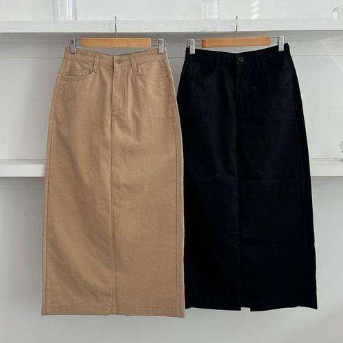 [스판굿] 코튼 슬림핏 h라인 앞트임 슬릿 롱 스커트