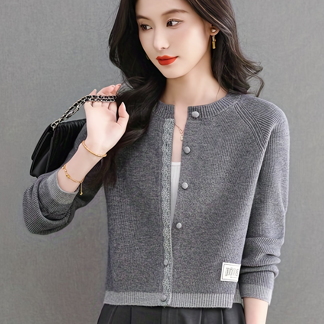 TEMU 겨울 숏 재킷 - 그레이 & 블랙 버튼 프론트 가디건 스웨터 코트, 루즈핏 칼라 가슴 포켓, 핸드워시 가능한 가을/겨울 레이어링 아우터 (캐주얼 & 프로페셔널)