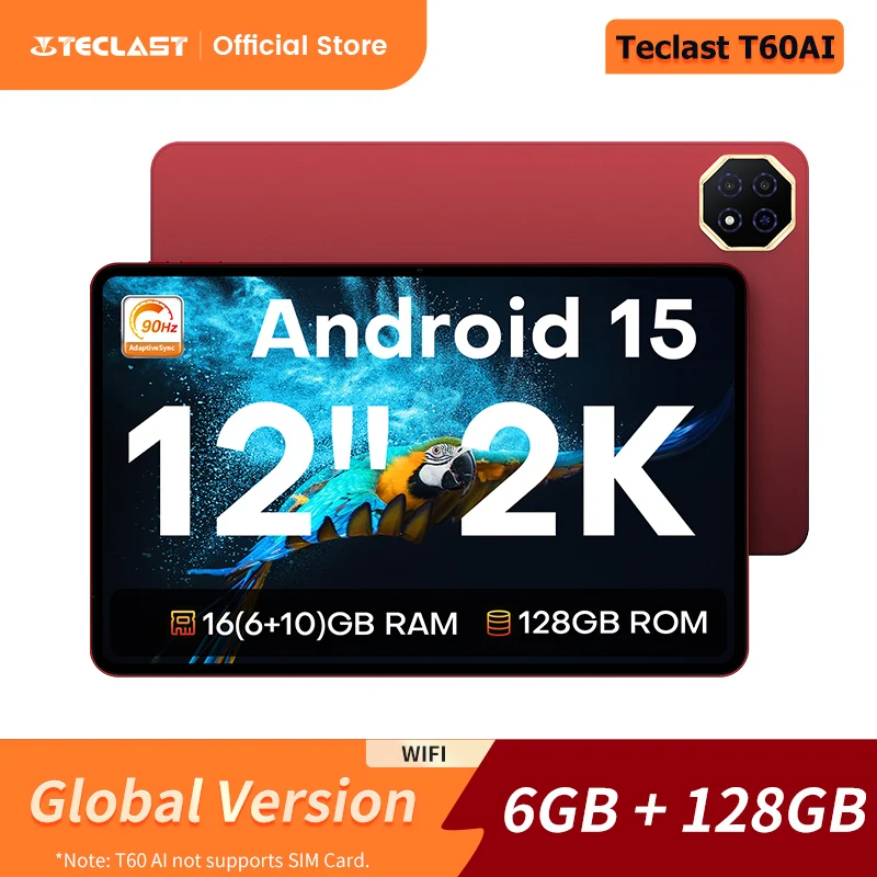 Teclast T60 AI 태블릿 12인치 90Hz AllWinner A733 6GB RAM (+10GB 가상) 128GB ROM 8000mAh 배터리 2000x1200 FHD 디스플레이 안드로이드 15