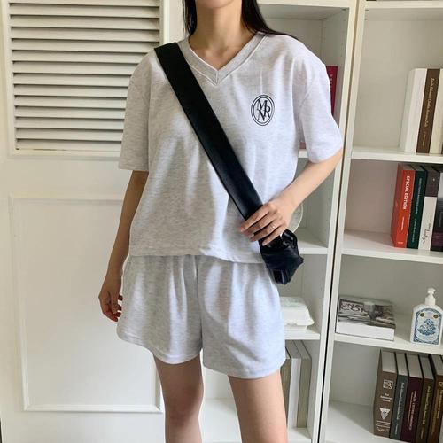 [옷자락] 여성용 캐주얼 면혼방 브이넥 반팔티와 반바지 세트