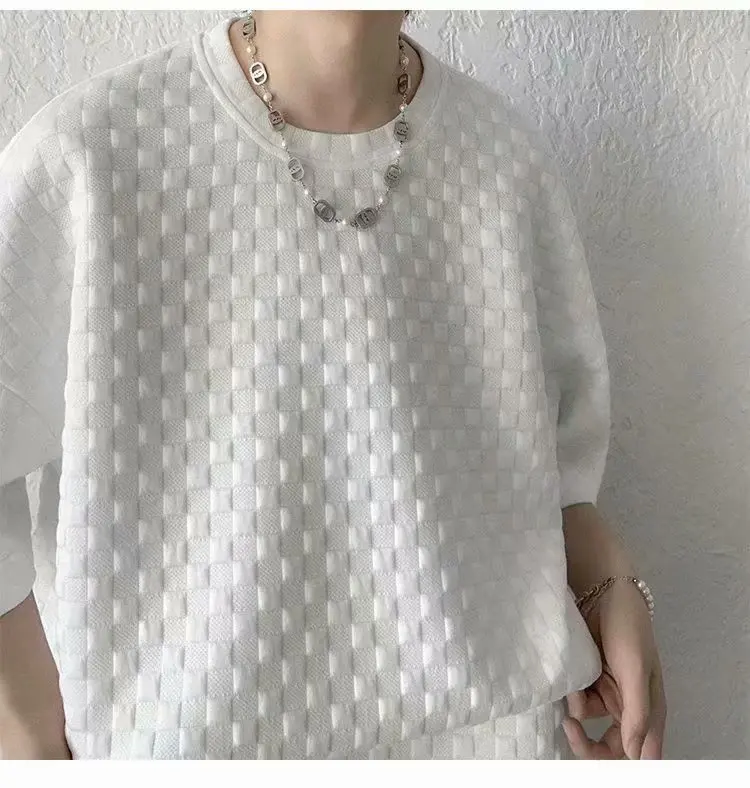 남성용 아이스 실크 퀵 드라이 반팔 티셔츠 반바지 세트 캐주얼 스포츠웨어 여름 컬렉션 편안하고 통기성 좋은 청소년 사이즈