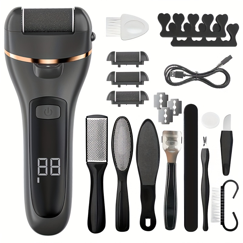 TEMU 1 전기 발 각질 제거기, 휴대용 페디큐어 키트 (3개 롤러 포함), 프로페셔널 홈케어 도구, 베이지 컬러, 집에서 사용하기 좋은 선물 및 셀프 케어에 완벽한 제품