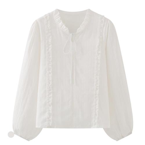 티뷰 러플 카라 퍼프 블라우스 V6A-CBL011