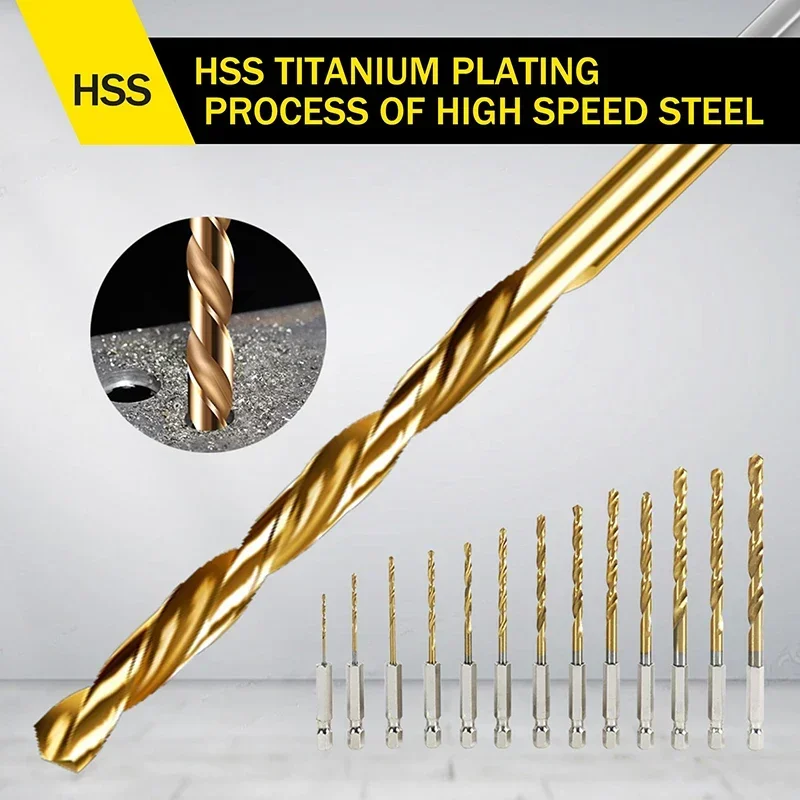 13PCS 육각 핸들 티타늄 트위스트 드릴 1.5-6.5mm 전동 드릴 스크류드라이버 드릴링 리밍 드릴 도구 스파이럴 드릴 비트