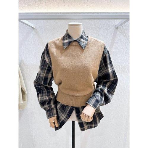 TEMU 여성 봄가을 패션 기본 체크 편안한 니트 민소매 베스트 데일리 통근 캐주얼 루즈핏 부드러운 조끼 나시 슬림소녀 SLIM GIRL