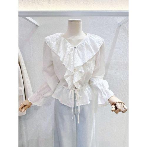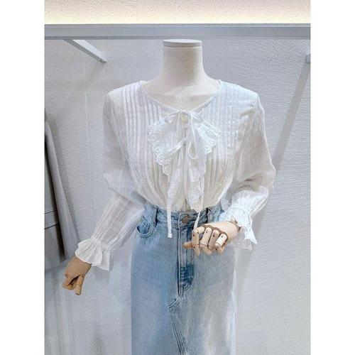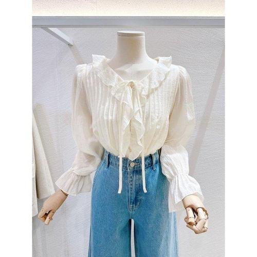 브이넥 프릴 타이끈 블라우스 AQ1WB344