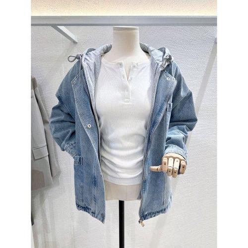 [LAP](김해점)후드 배색 워싱 포켓 데님 자켓 AS1DZ260