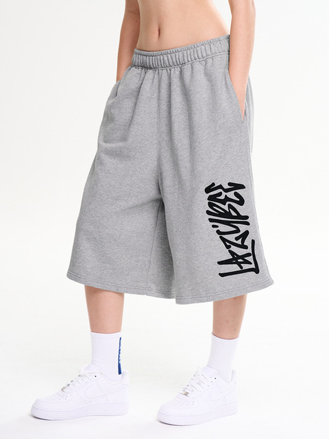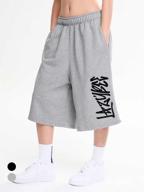 [레이지비] 자이언트핏 와이드 버뮤다 스웨트 팬츠 빅로고 헬스 짐웨어 운동복 반바지 W (2컬러)