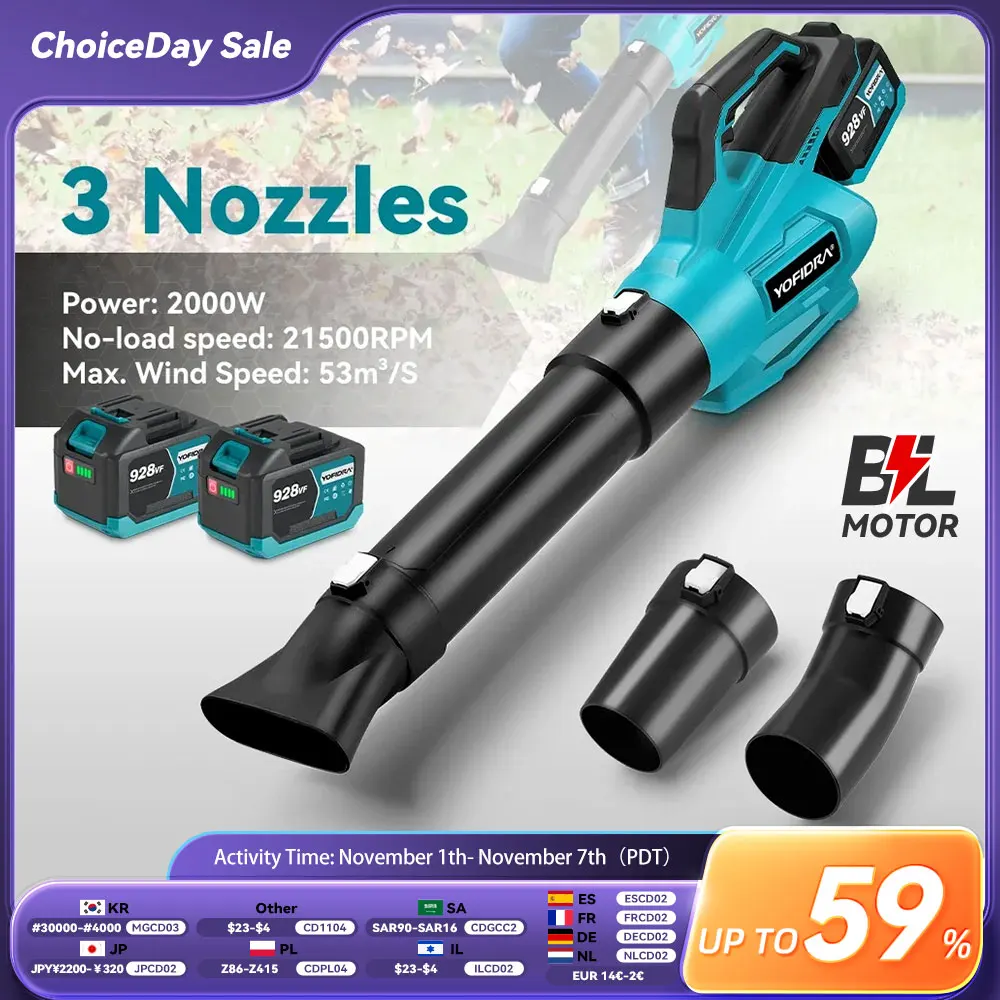 요피드라 무선 브러시리스 전기 에어 블로워, 마키타 18V 배터리 핀용 강력 송풍/눈/먼지/낙엽 제거 공구