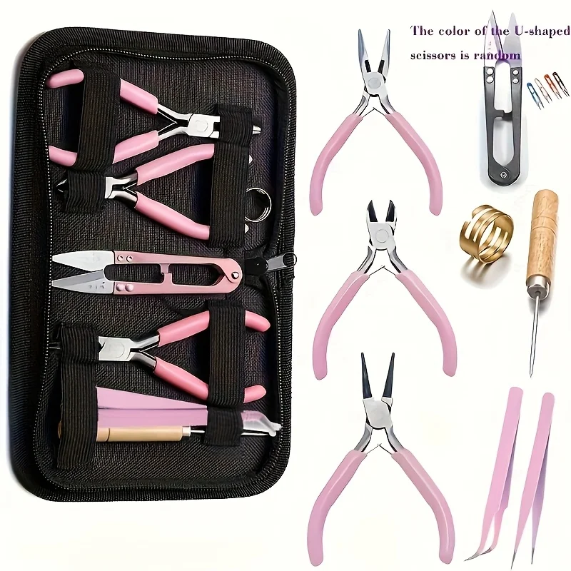 핑크 스테인리스 스틸 쥬얼리 플라이어 키트 - DIY 비즈 공예, 공예 및 휴대용 쥬얼리 도구용 라운드 노즈 및 와이어 커터