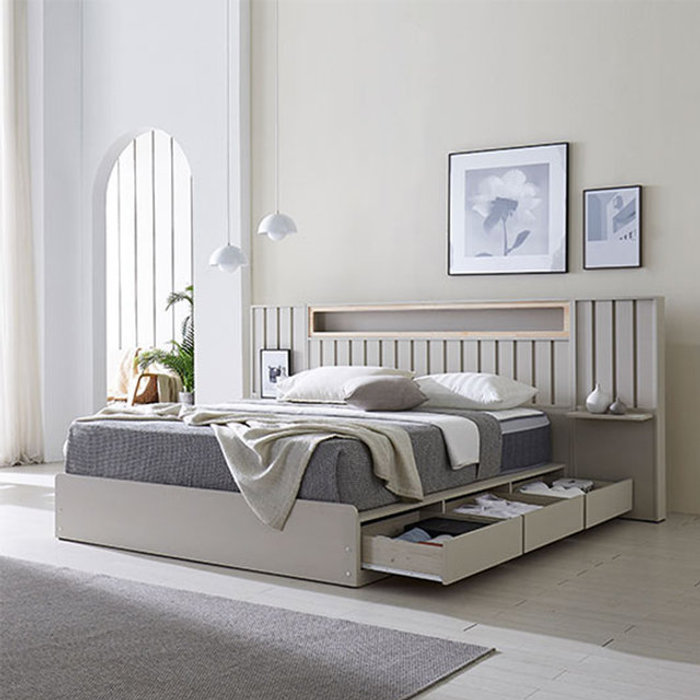 파로마 에단 LED 4서랍 평상형 킹사이즈 수납 침대프레임