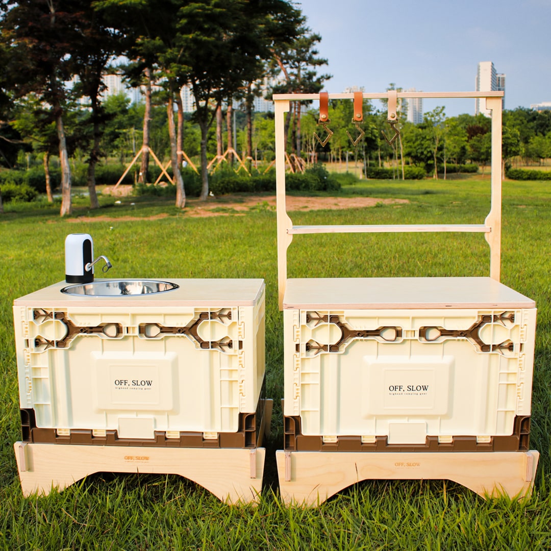 캠핑 폴딩박스 원목 개수대 수전 이동식 싱크대 세트 인디언 행어