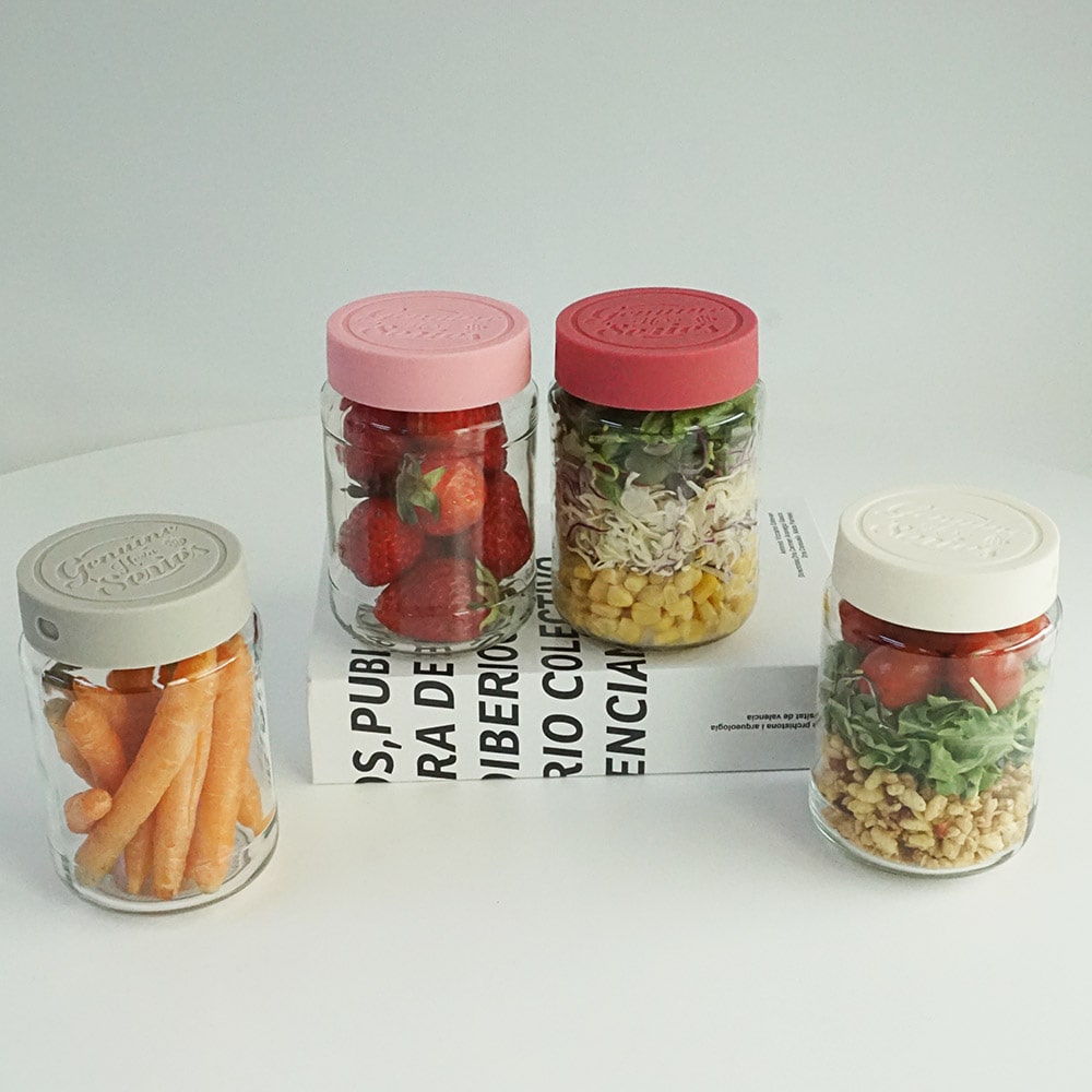 헥사 제뉴엔실리콘뚜껑 샐러드 밀프랩 보틀 유리병 450ml SK400S 4P