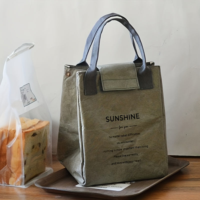 TEMU 스타일리시한 사무실용 도시락 가방, 플라스틱 용기 & 인조 가죽 손잡이 포함 (노랑/녹색). 동기부여 문구 포함, 직사각형 모양. 비식품 접촉 보온 도시락 가방|가방|보부상가방|정리함