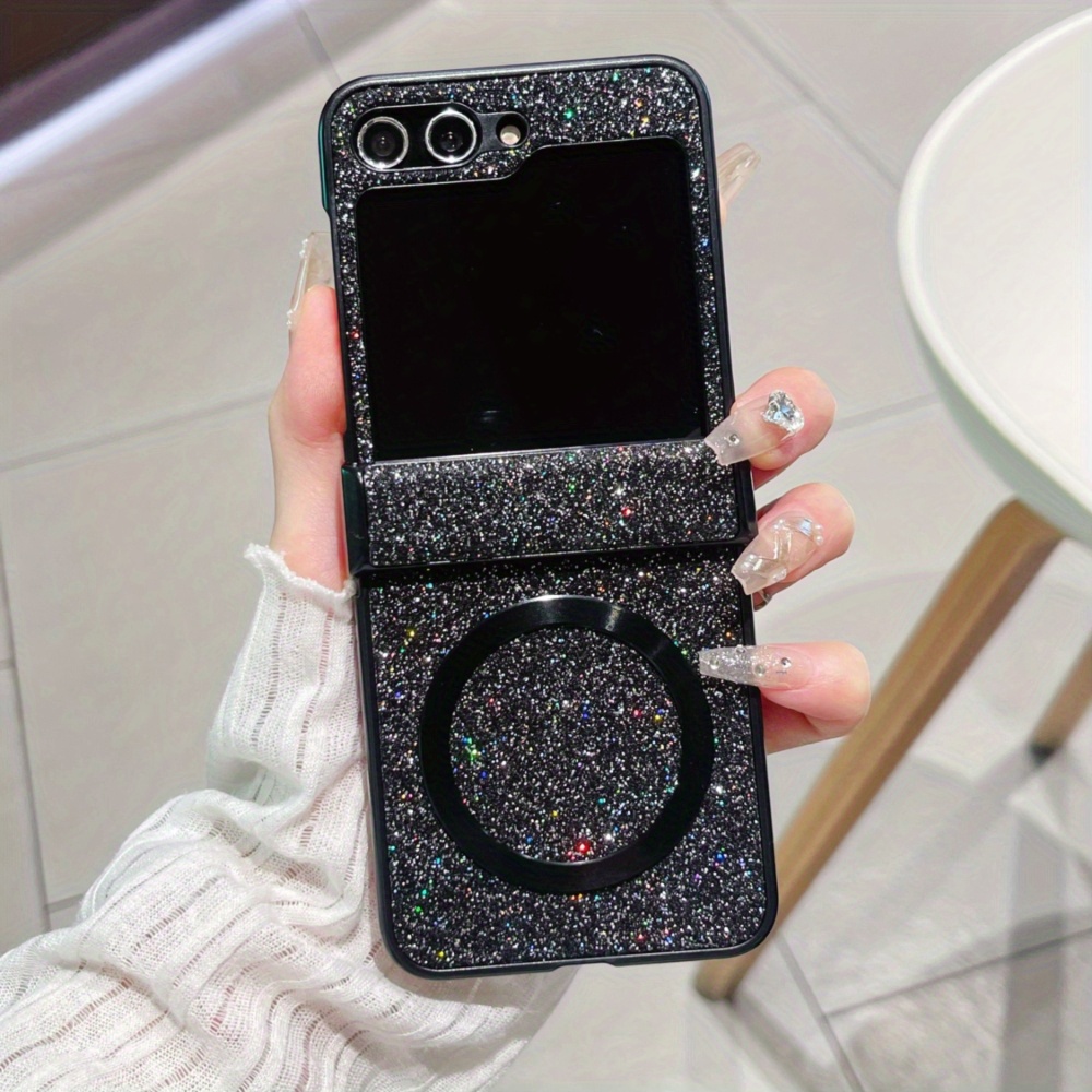 TEMU 휴대폰 케이스 - 삼성 갤럭시 Z 플립7용 글리터 스파클 마그네틱 케이스