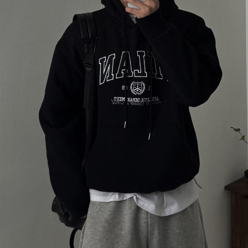 제로스샵 / 편안핏/캐주얼 밀란 아치로고 기모 오버핏 후드티