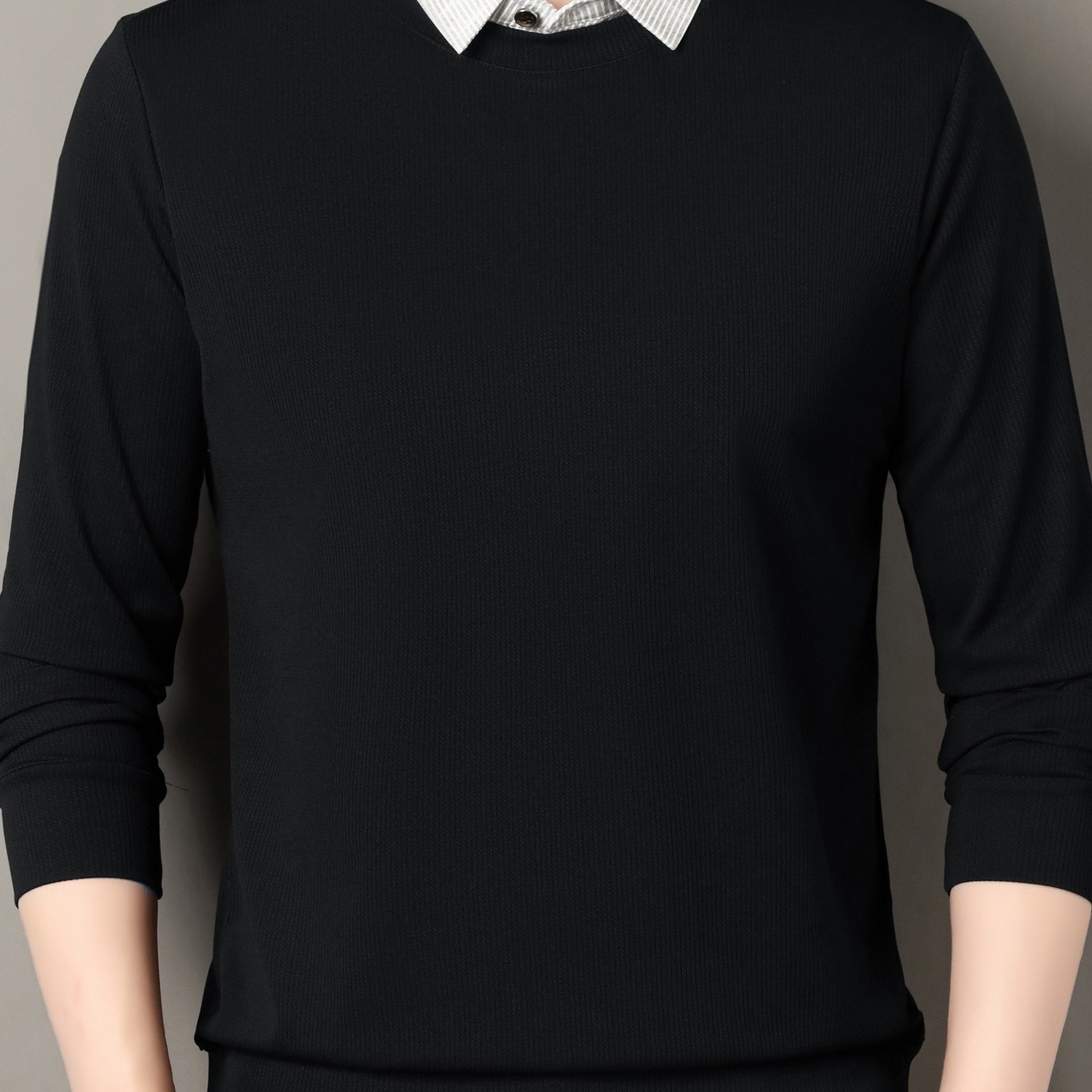TEMU 가을 남성용 긴팔 셔츠, 야외 캐주얼웨어를 위한 솔리드 컬러의 페이크 이부피스 칼라티