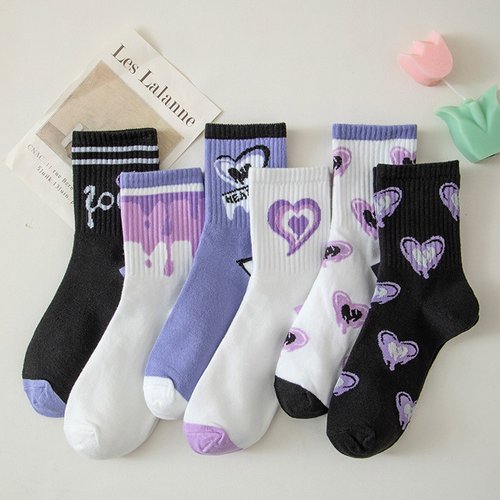 [루즈루나] 줄리나 퍼플 하트 여성 골지 무압박 삭스 양말 6켤레 세트