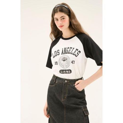 [NBA]LAL 라글란 컬러블럭 반팔 티셔츠(N252TS125P)