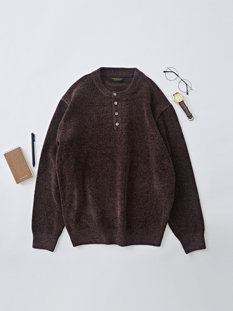 [아날로그무드] 벨로아 리파인드 헨리넥 라운드 니트 (브라운)