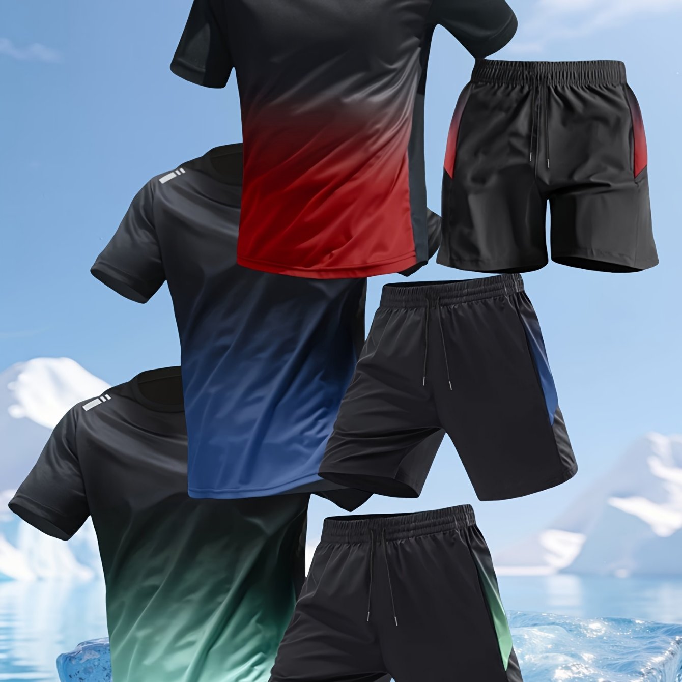 TEMU 6개 세트, 반팔 3개, 반바지 3개, 통기성 좋고 편안한 봄 여름 정장, 달리기, 피트니스, 여가용으로 적합