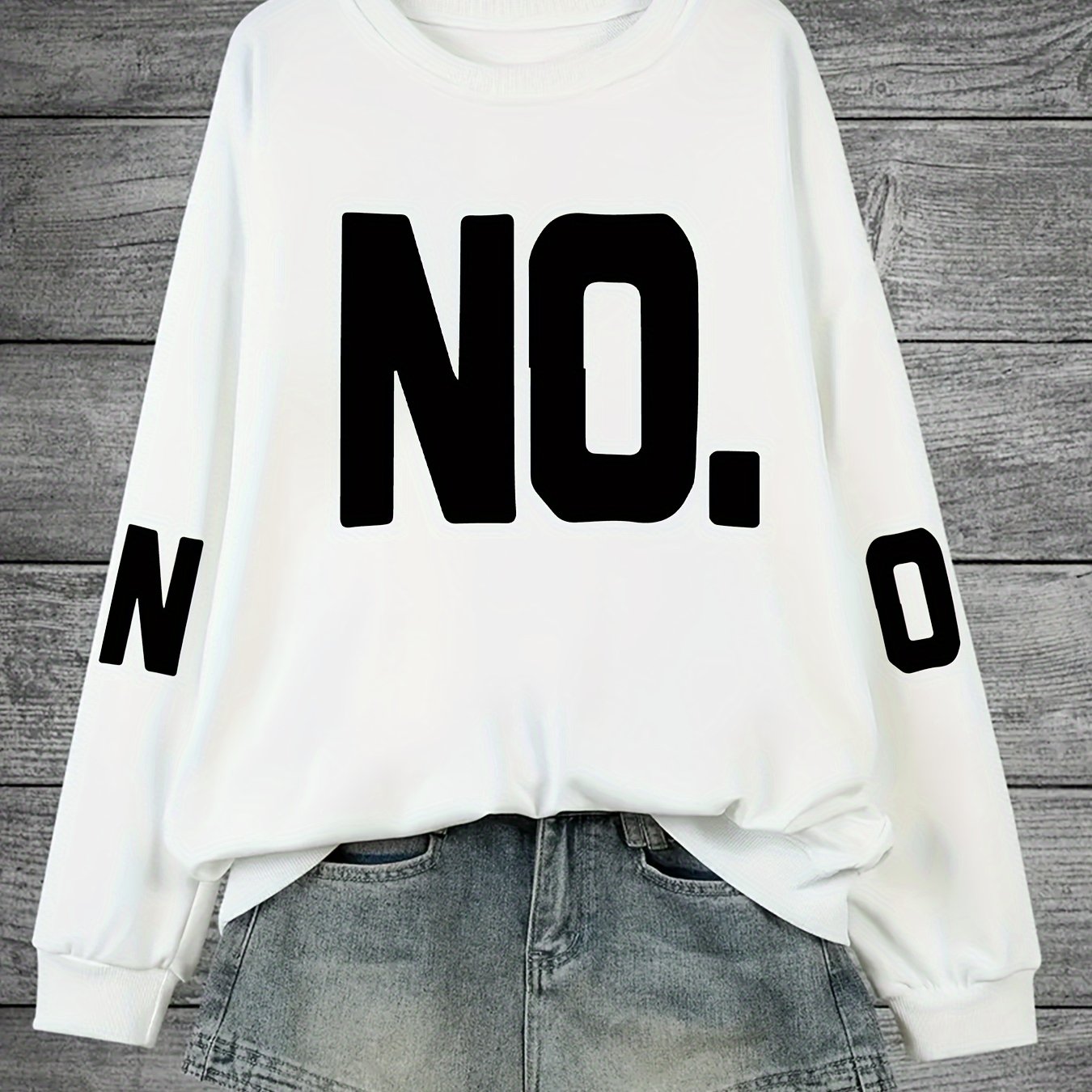 TEMU 플러스 사이즈 - 플러스 사이즈 여성용 라운드넥 스웨트셔츠 (팔에 프린트 없음)