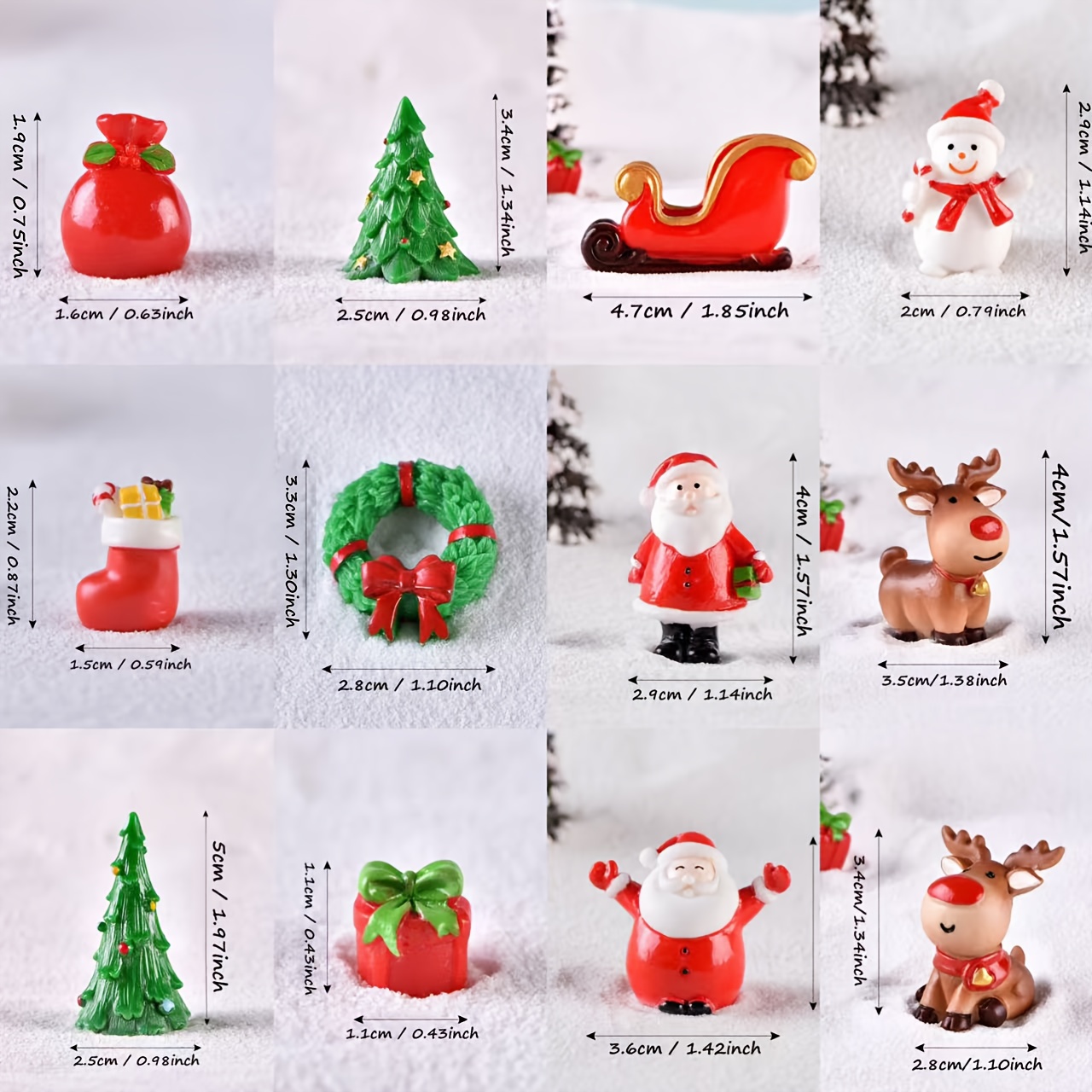TEMU 12개 미니 크리스마스 피규어 세트 - 레진 산타, 눈사람, 크리스마스 트리 & 순록 장식, 공예용, 눈구멍, 정원 풍경 센터피스 - 크리스마스 & 겨울 축하를 위한 다용도 휴일 장식