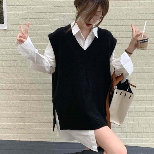 [셀럽하우스]브이넥 ROKU5467 니트조끼 여성 데일리 패션 옆트임 베스트