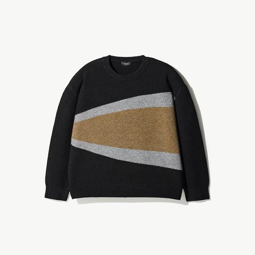 [STCO]라운드 기하학 패턴 니트_블랙 (오버핏)_BP