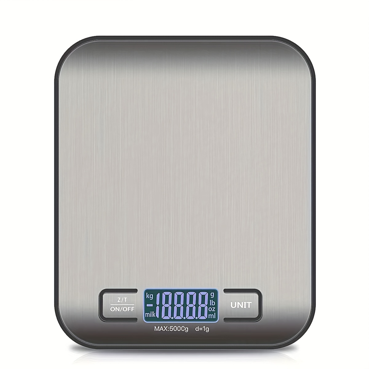 TEMU Kolzp 5Kg 고정밀 디지털 주방 저울 - 대형 LCD 디스플레이, 튼튼한 스테인리스 스틸을 특징으로 하는 베이킹 및 요리 필수 도구 (배터리 미포함)