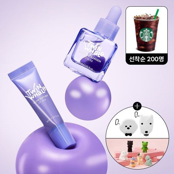 [한정구성] NEW 트윈웨일 글로우 기획세트 (콜라겐세럼30ml+펩타이드립잼10ml) (+립밤 키링&키링파우치 랜덤 증정)