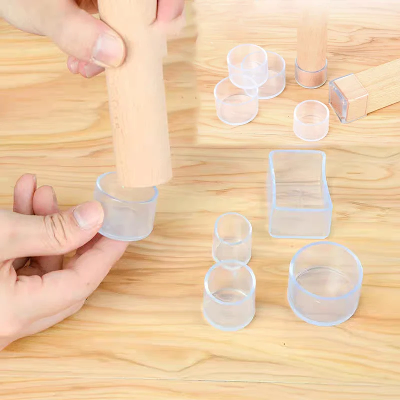 4Pcs 사각형/라운드 투명 실리콘 의자 다리 커버 미끄럼 방지 가구 피트 캡 가구 레벨링 피트 구멍 플러그 먼지 커버