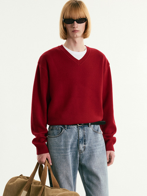 [티엔지티] 캐시미어 블렌디드 브이넥 니트 [레드브라운] TNSW5F108R2