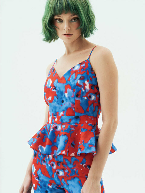 [그리디어스] Liquid Print Sweetheart Neckline Peplem Top