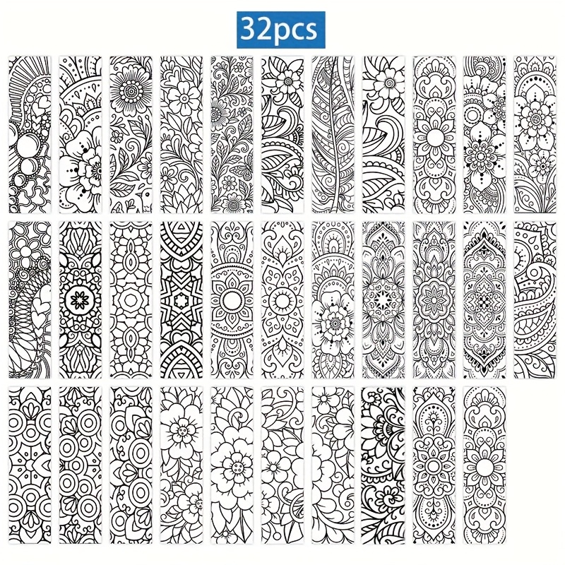 TEMU 32 Mandala 컬러링 북마크 세트 - 블랙 앤 화이트 복잡한 패턴, 플로럴 & Mandala 디자인, 크리스마스, 생일 컬러링 활동