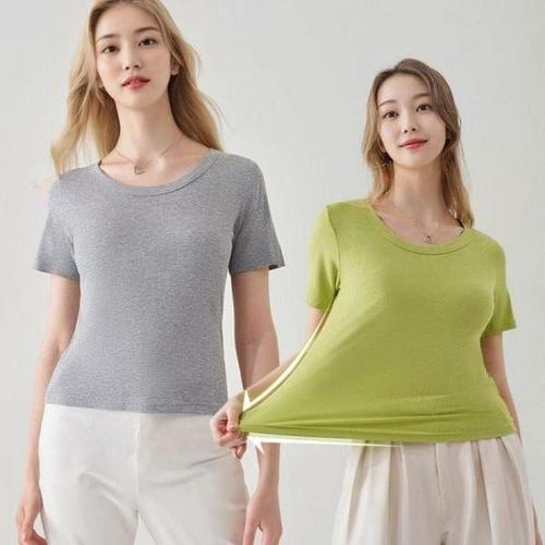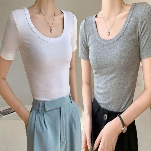 [셀러허브_여성트랜드패션]여성 반팔 골지 슬림핏 이너 티셔츠 티셔츠 U넥 딥