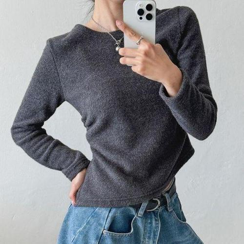 구디프 여성용 여리핏 슬림 딥유넥 라운드 슬릿 기본 긴팔티
