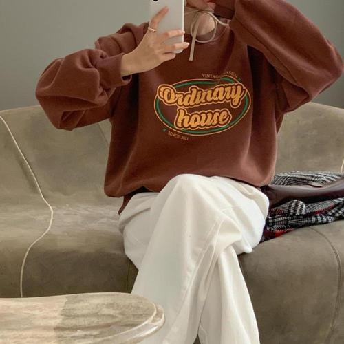 허블리 1+1 여성 기모 라운드 긴팔 티셔츠