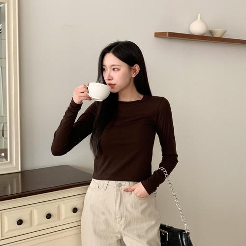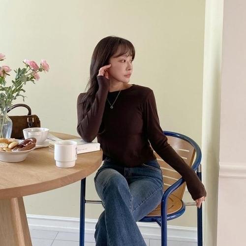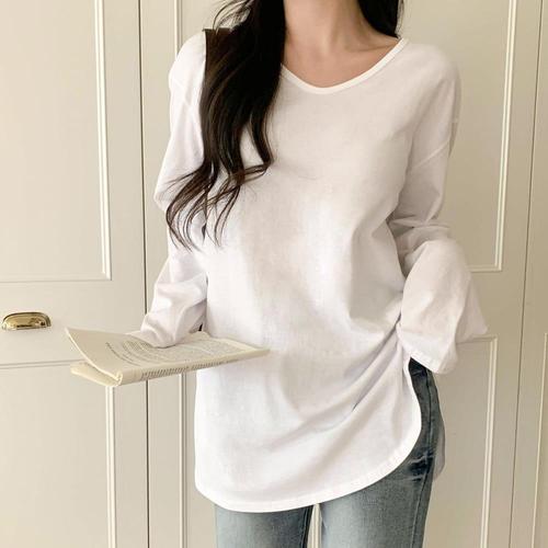 [다잇템]여자 롱슬리브 일상룩 U넥 슬림핏 티셔츠