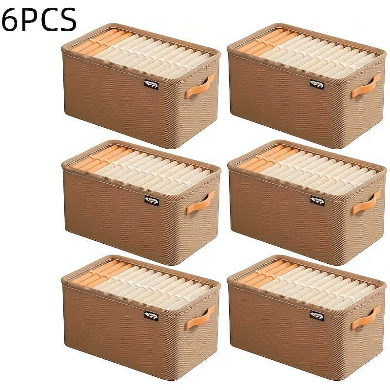 TEMU 6개 대형 패브릭 수납 바구니, 접이식 더블 핸들 - 헤비듀티 패브릭 서랍 정리함, 공간 절약형 디자인, 다기능 옷, 장난감, 옷장, 침실 수납용, 옷, 속옷, 양말 수납에 적합 - 홈, 기숙사, 옷장 정리, 침대 밑 수납에 완벽