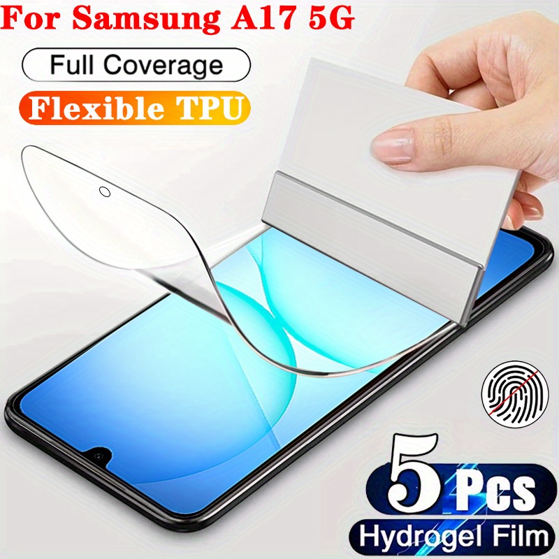 TEMU [5개입] 삼성 갤럭시 A17 5G용 독점 수화겔 필름, 투명 TPU 비유리 소재, 지문 잠금 해제 지원, 스크래치 방지 및 지문 방지, 부드러운 터치 스크린 보호 필름