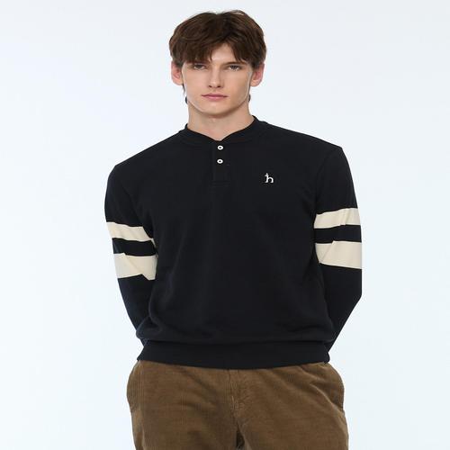 헤지스 남성 [스테디셀러] 네이비 컬러배색 면 맨투맨티셔츠 (WHTS4C052N2)