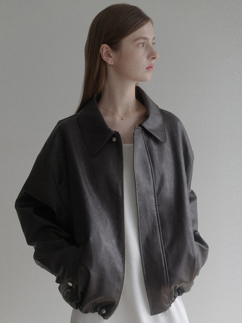[다이닛] DEINET FAUX LEATHER BOMBER JACKET IN BLACK