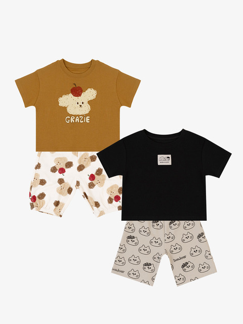 [유비맘클로젯] [W컨셉 단독] 뽀글몽 몽자 7부 상하복 2팩 세트